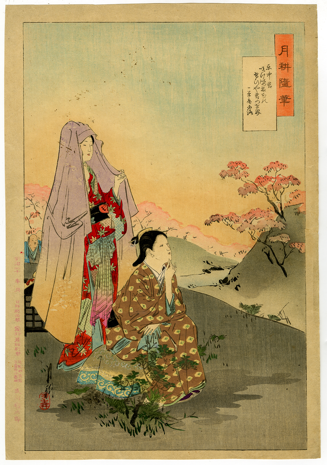 Antieke prent-JAPANSE KUNST-HOUTBLOK-KOSTUUM-KIMONO-VROUW-Anoniem-Ca. 1850