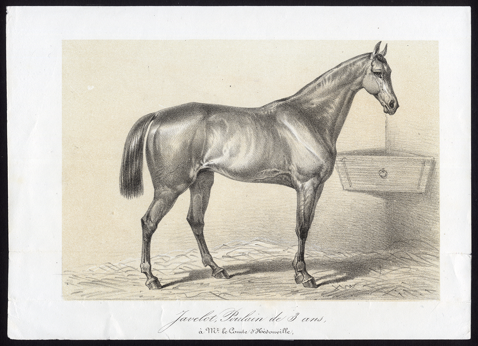 Beschrijving: Deze print is afkomstig uit ‘Journal des Haras, des chasses et descourses de chevaux’, een zeldzaam hippisch tijdschrift uitgegeven in België 1853.