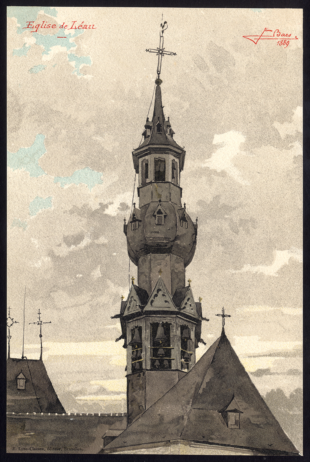 Onderwerp: Plaat: ‘Eglise de Leau.’ Dit bord toont de kerk van Zoutleeuw/Leau, België.
