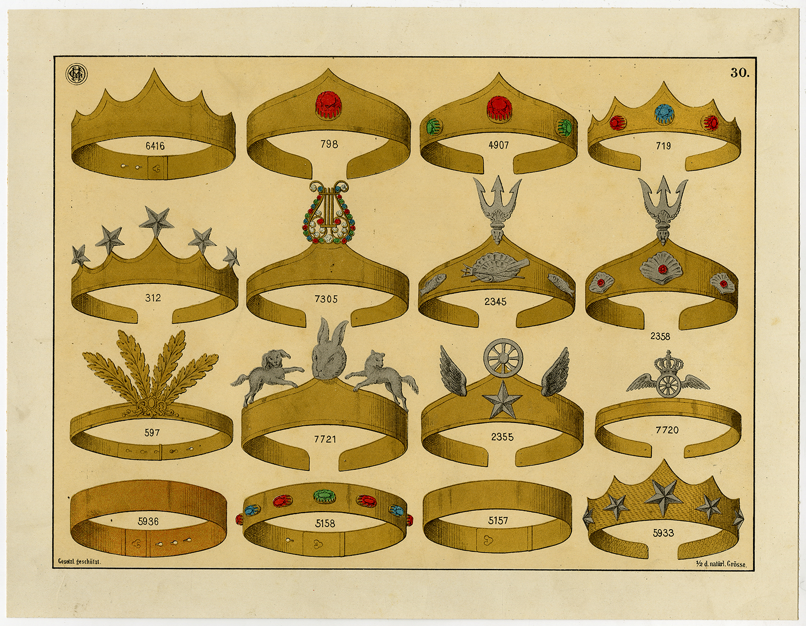Antieke prent-KROON-GOUD-edelsteen-TIARA-SIERADEN-PLAAT 30-Anoniem-c. 1890