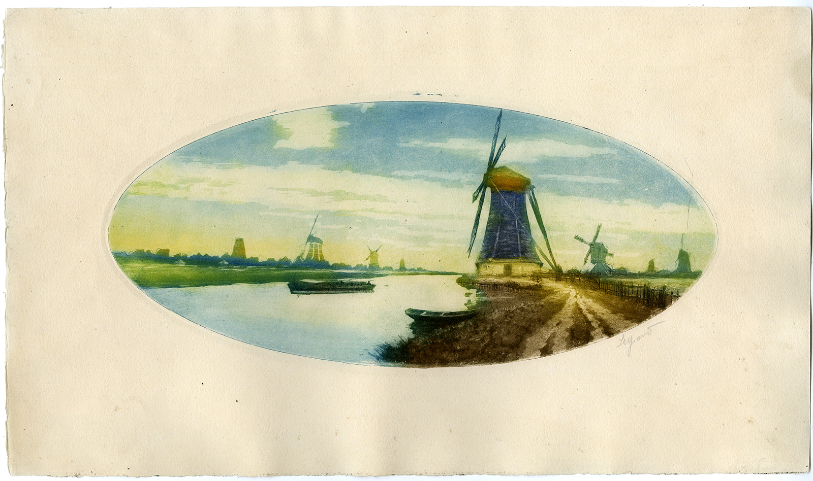 Antieke prent-LANDSCHAP-SCHERMER-WINDMOLEN-POLDER-Legrand-c. 1925