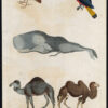Onderwerp: Plaat XCIII: Op deze plaat staan diverse vogelsoorten afgebeeld; 1. Lepelbiljet – 2. Barbarijse eekhoorn – 3. Vliegende eekhoorn – 4. Hudson’s Bay-eekhoorn – 5. Gevarieerde eekhoorn – 6. Eekhoorn met witte neus.