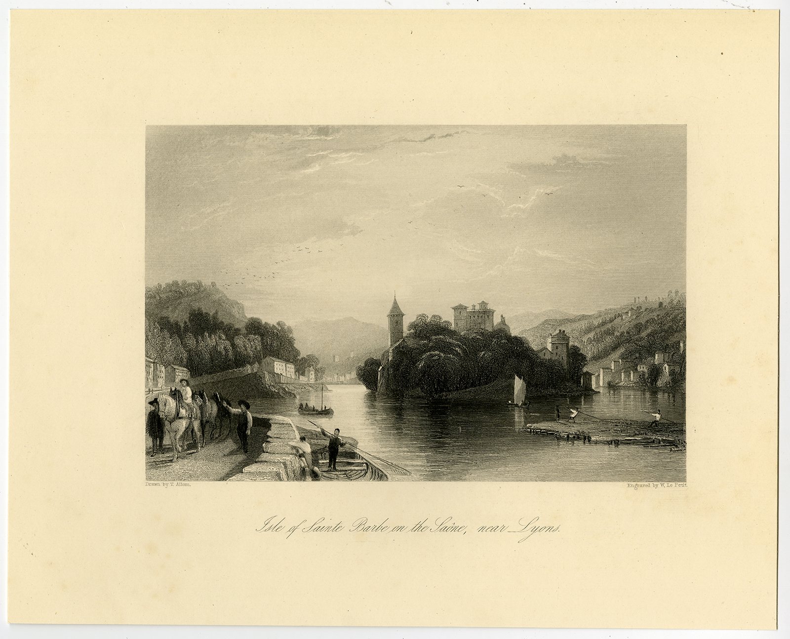Antieke prent-LYON-ISLE OF SAINTE BARBE-SAONE-FRANCE-VIEW-Allom-Le Petit-1870