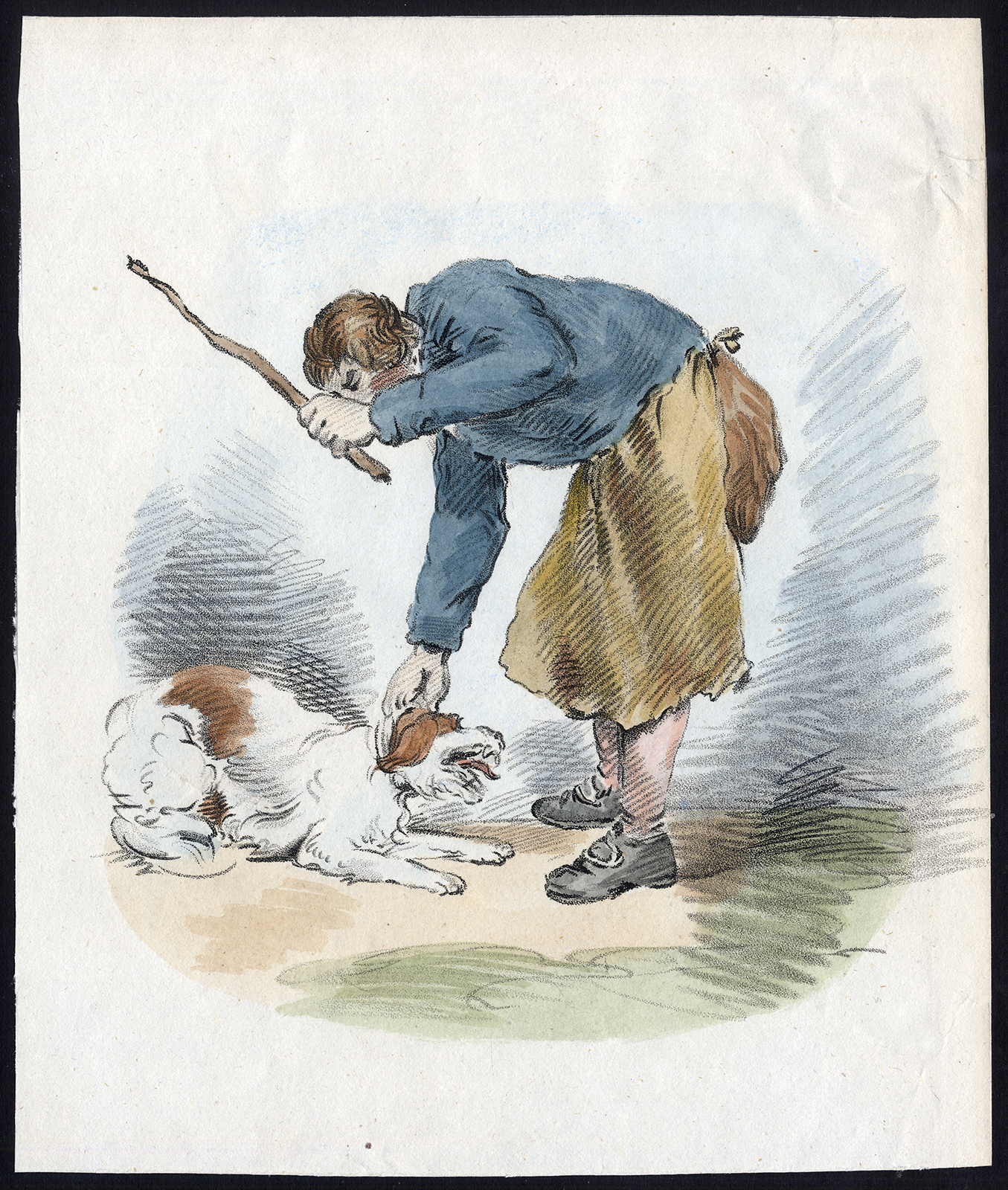 Antieke prent-MAN-DOG-STUDIE-SCHETS-George Morland-1793