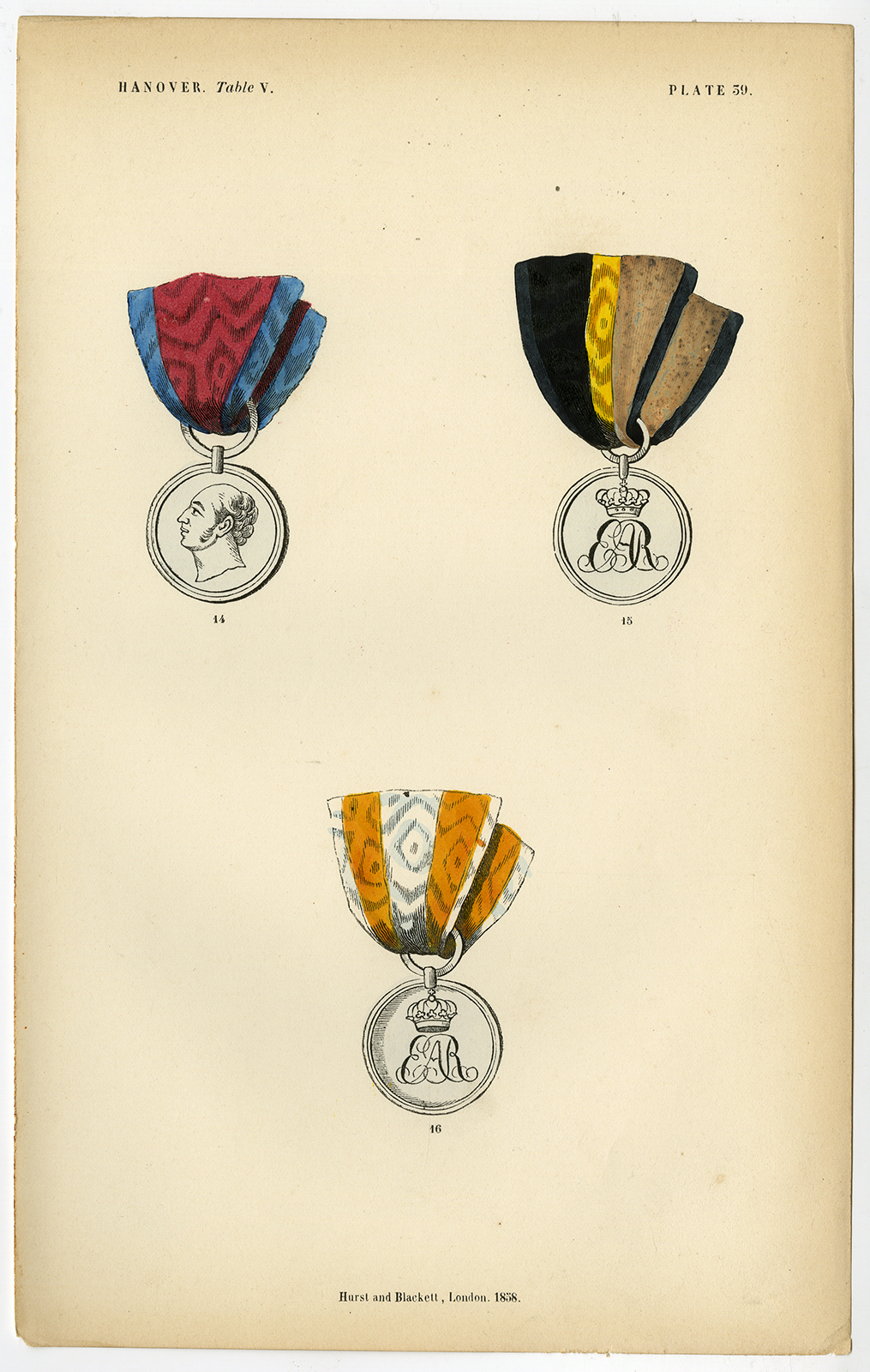 Antieke prent-MEDAAL-ORDER-DECORATIE-HANNOVER-PLAAT 39-Burke-1858