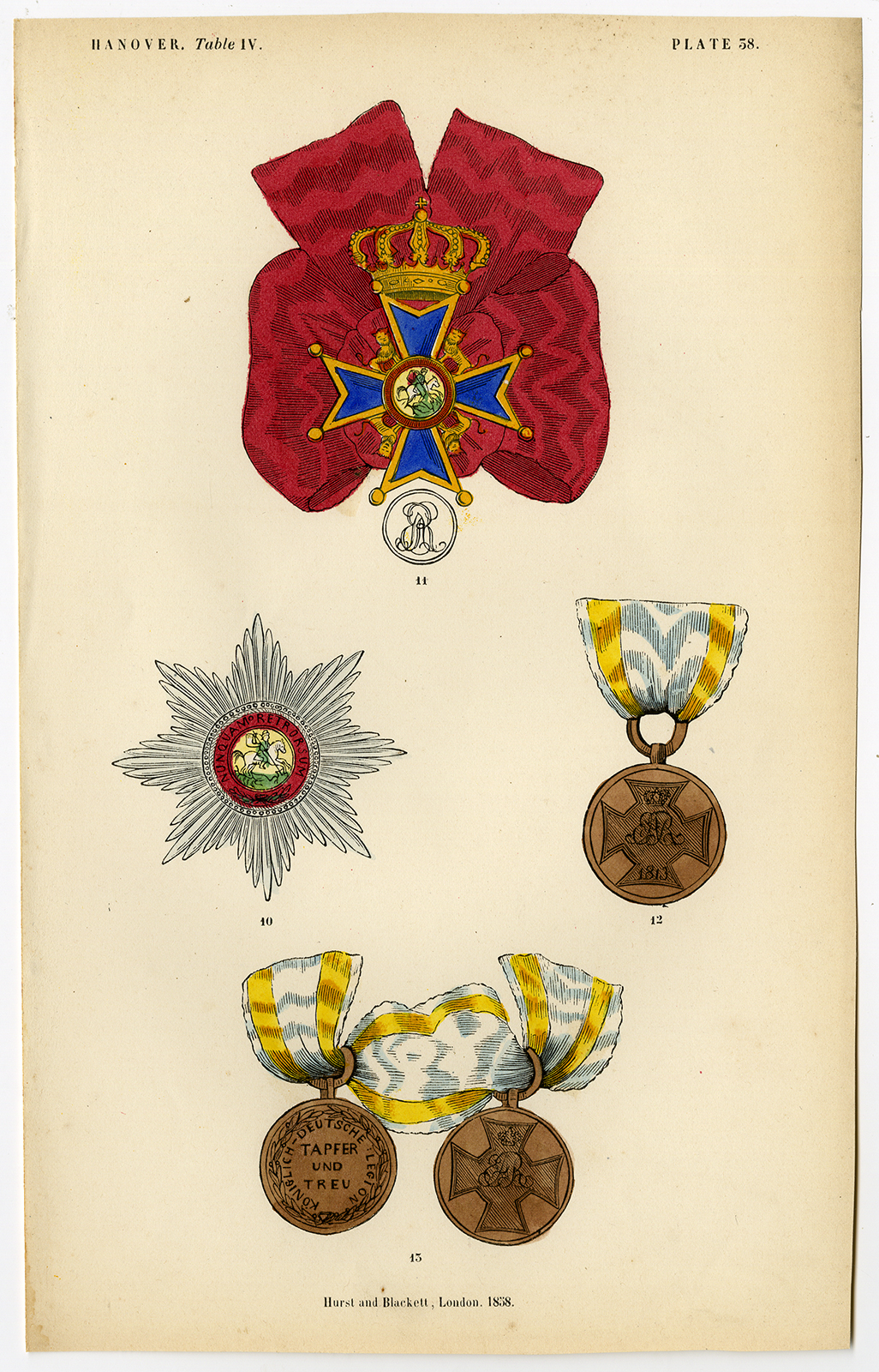 Antieke prent-MEDAAL-ORDER-DECORATIE-HANOVER-PLAAT 38-Burke-1858