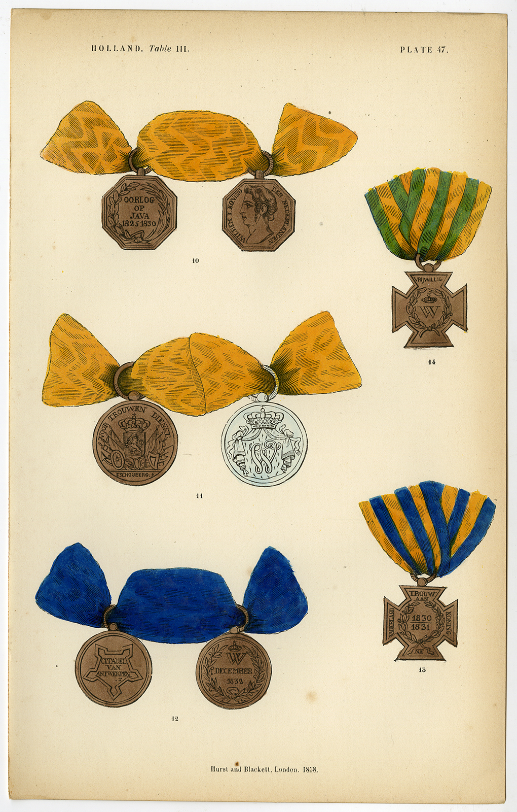Antieke Prent – MEDAILLE VAN ANTWERPEN – JAVA – DECORATIES – NEDERLAND – PLAAT 47 – Burke – 1858