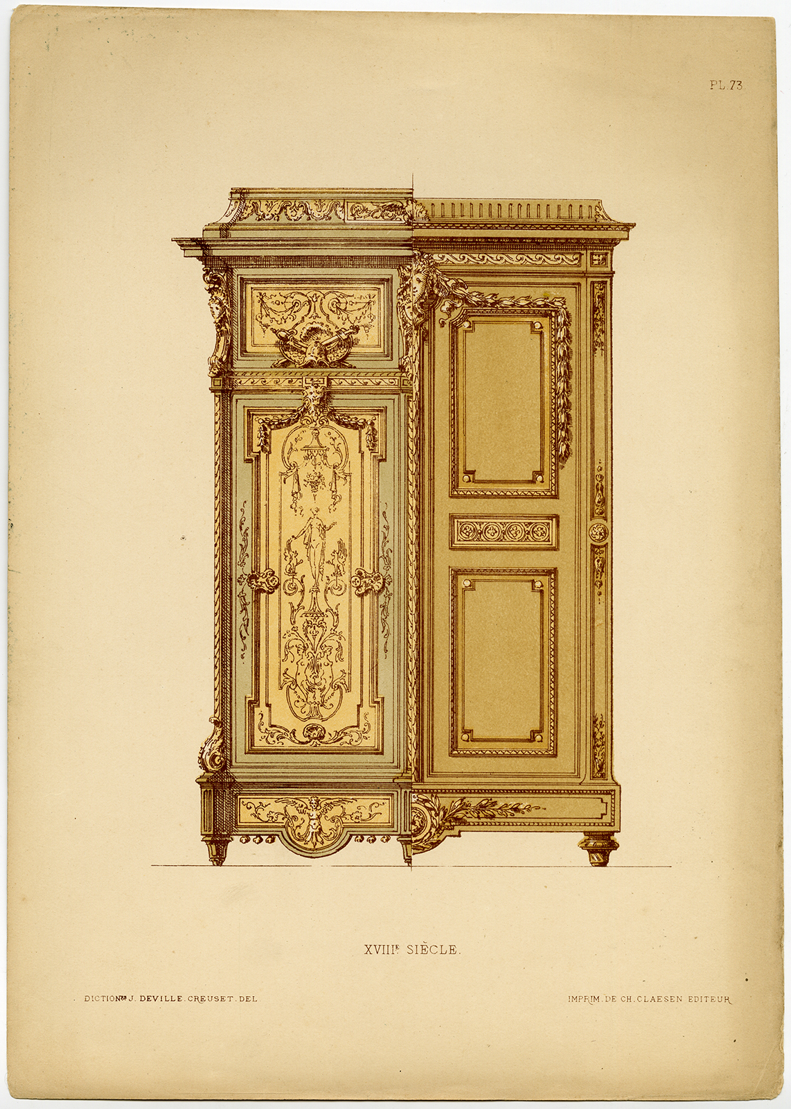 Antieke prent-MEUBILAIR-KAST-ORNAMENT-pl. 73-Deville Creuset-1850