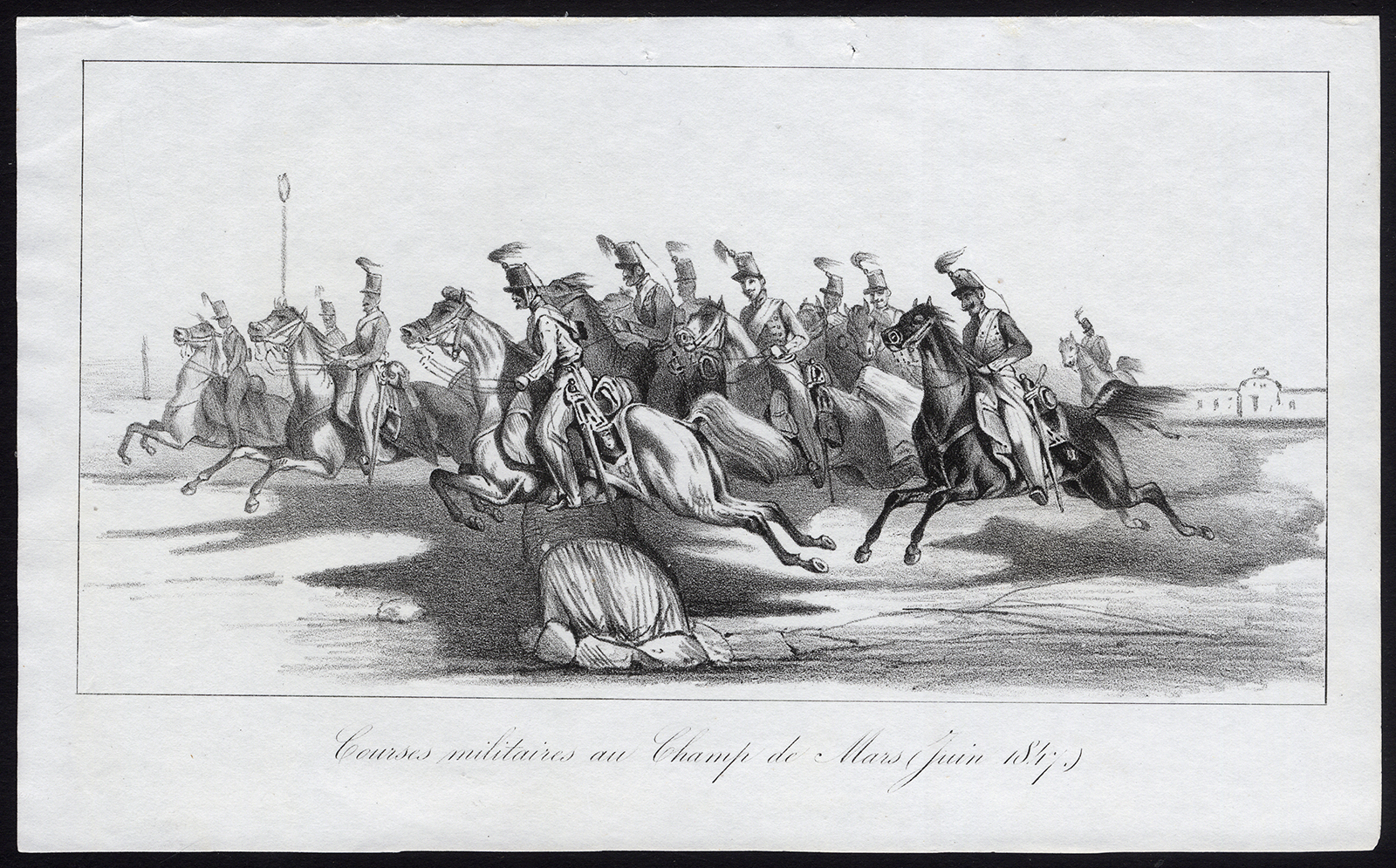 Antieke prent-MILILTAIRY CURSUS-PAARD-CHAMP DE MARS-PARIJS-Journal des Haras-1847