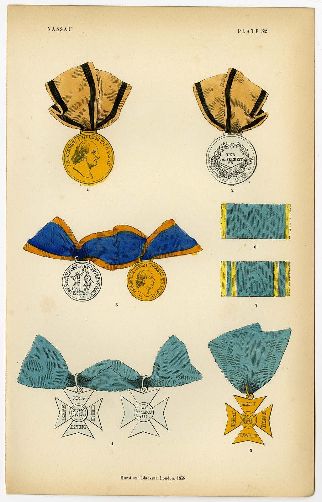Antieke prent-MILITAIRE DECORATIE VAN EER-ORDER-NASSAU-PLAAT 52-Burke-1858