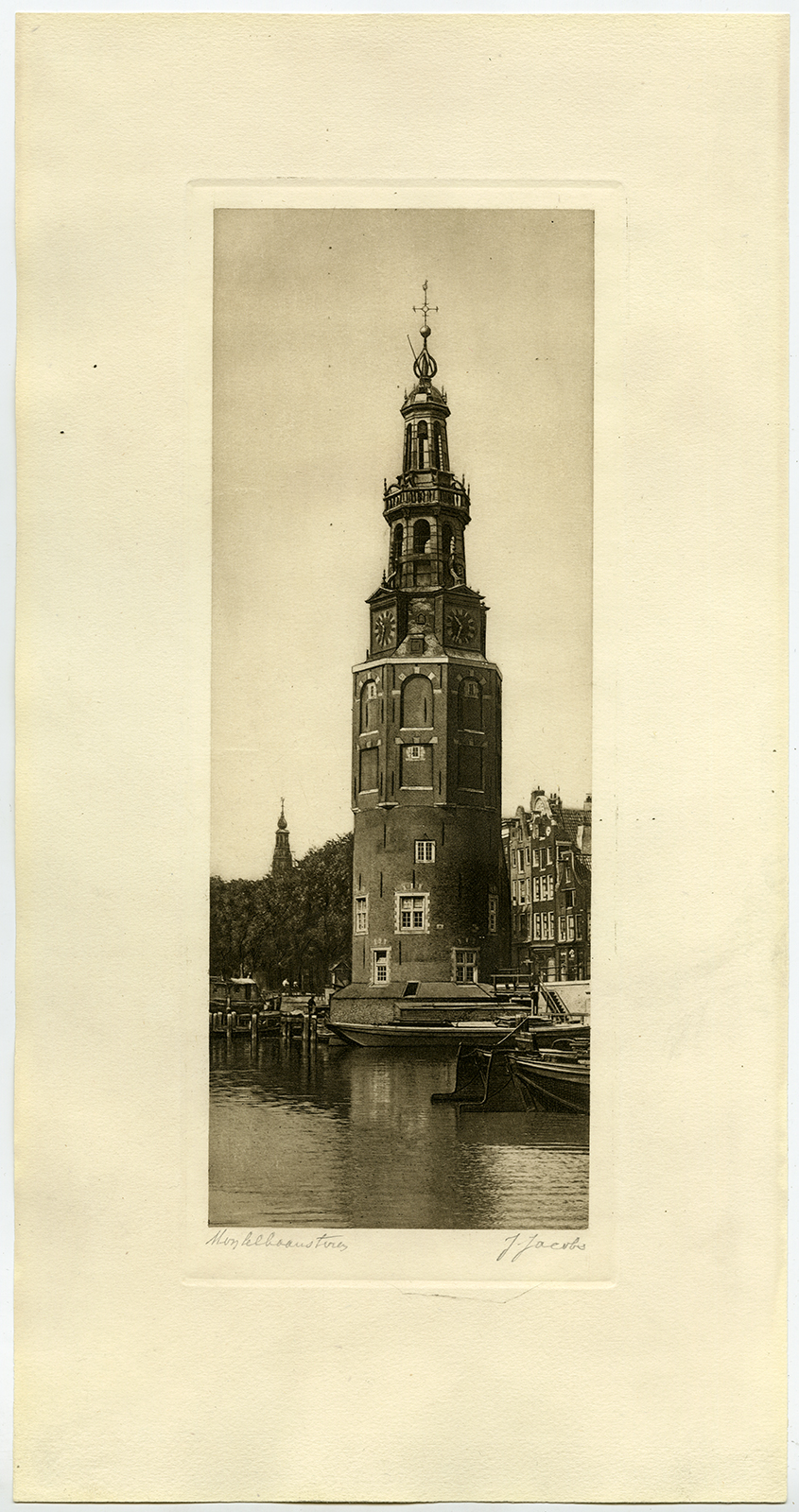Antieke prent-MONTELBAANSTOREN-AMSTERDAM-Jacobs-c. 1925