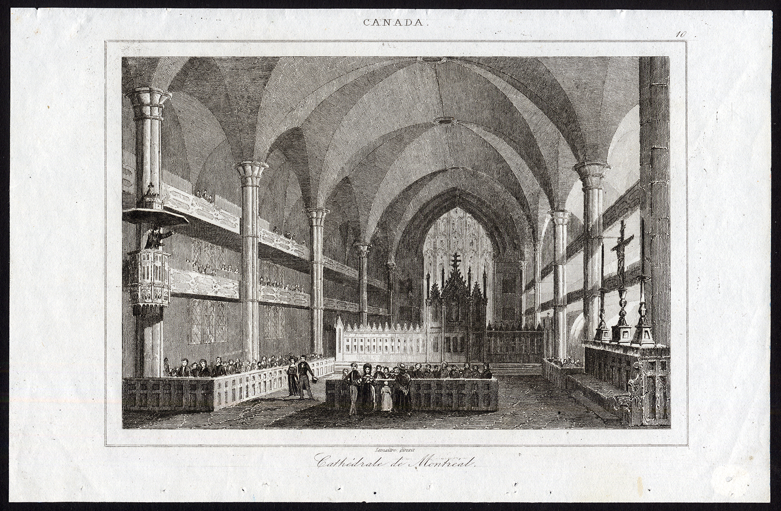 Antieke prent-MONTREAL-KATHEDRAAL-INTERIEURVIEW-CANADA-Lemaitre-1849