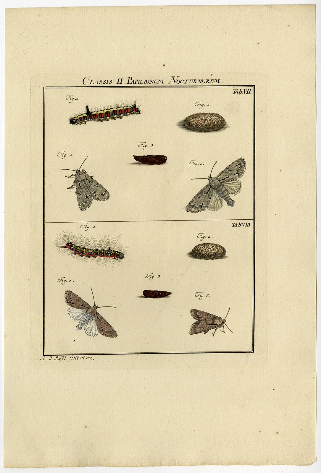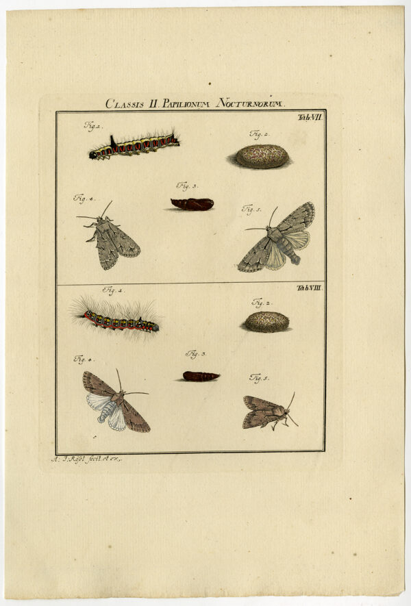 Antieke prent-MOTH-VLINDER-CATERPILLAR-PLAAT VII-Roesel von Rosenhof-1740