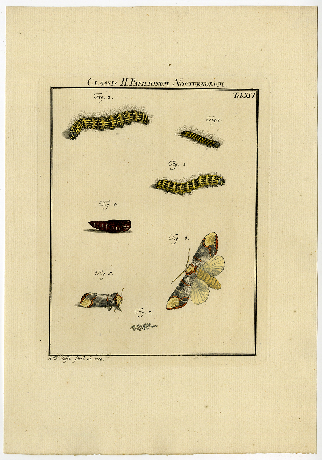 Antieke prent-MOTH-VLINDER-CATERPILLAR-PLAAT XIV-Roesel von Rosenhof-1740