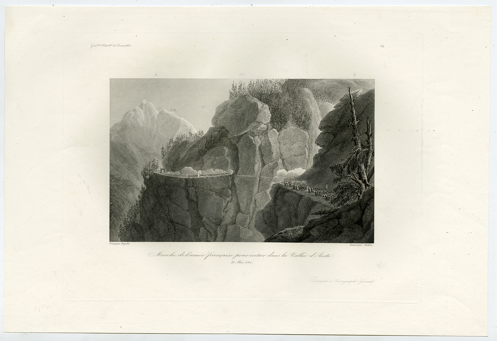 Antieke prent-NAPOLEON-FRANSE LEGER-AOSTA VALLEI-ITALIË-Bagetti-Skelton-c. 1840