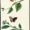 Antieke prent-NATUURLIJKE GESCHIEDENIS-VLINDER-ZWART GEADERD WIT-LARVA-Bechstein-1795