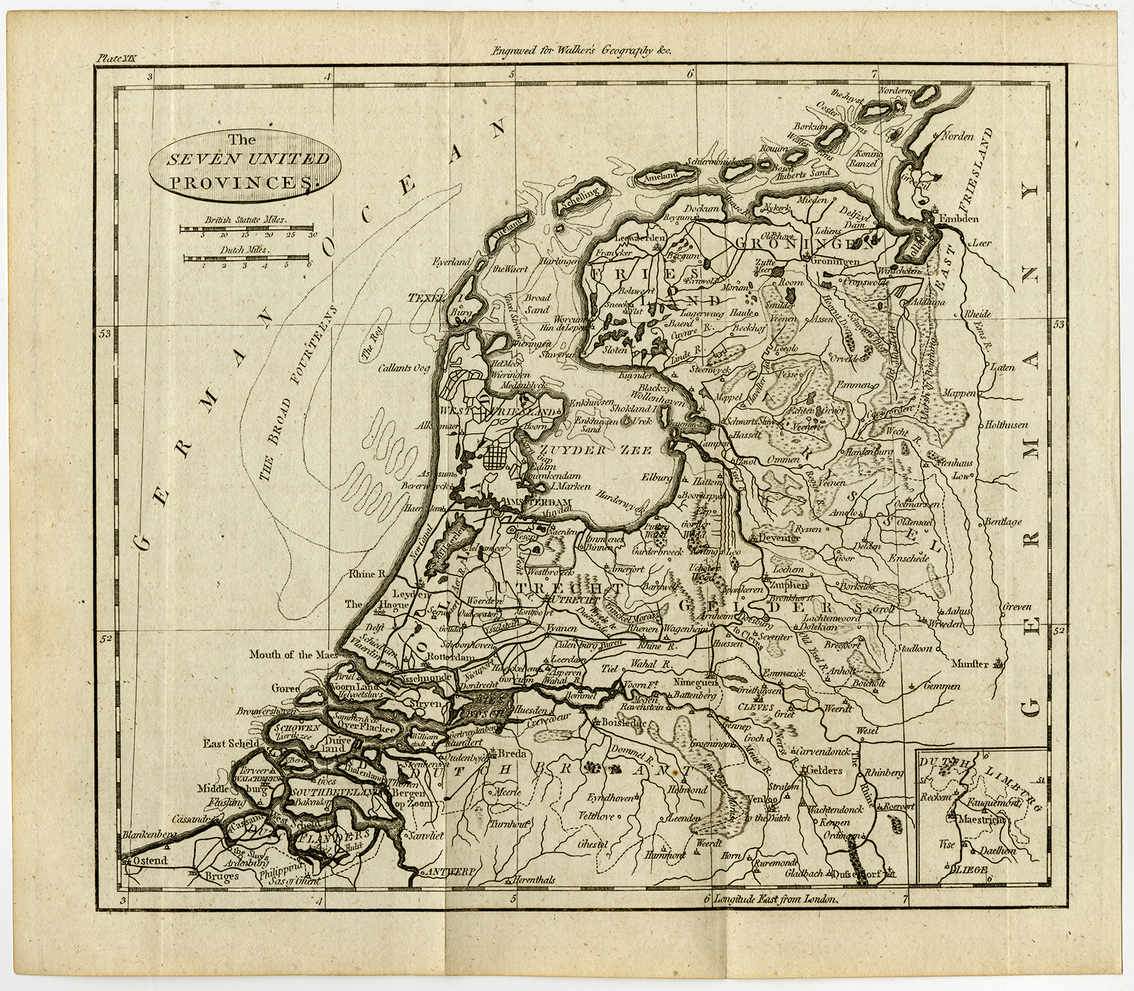 Antieke prent-NEDERLAND-HOLLAND-7 VERENIGDE PROVINCIES-Walker-c. 1780
