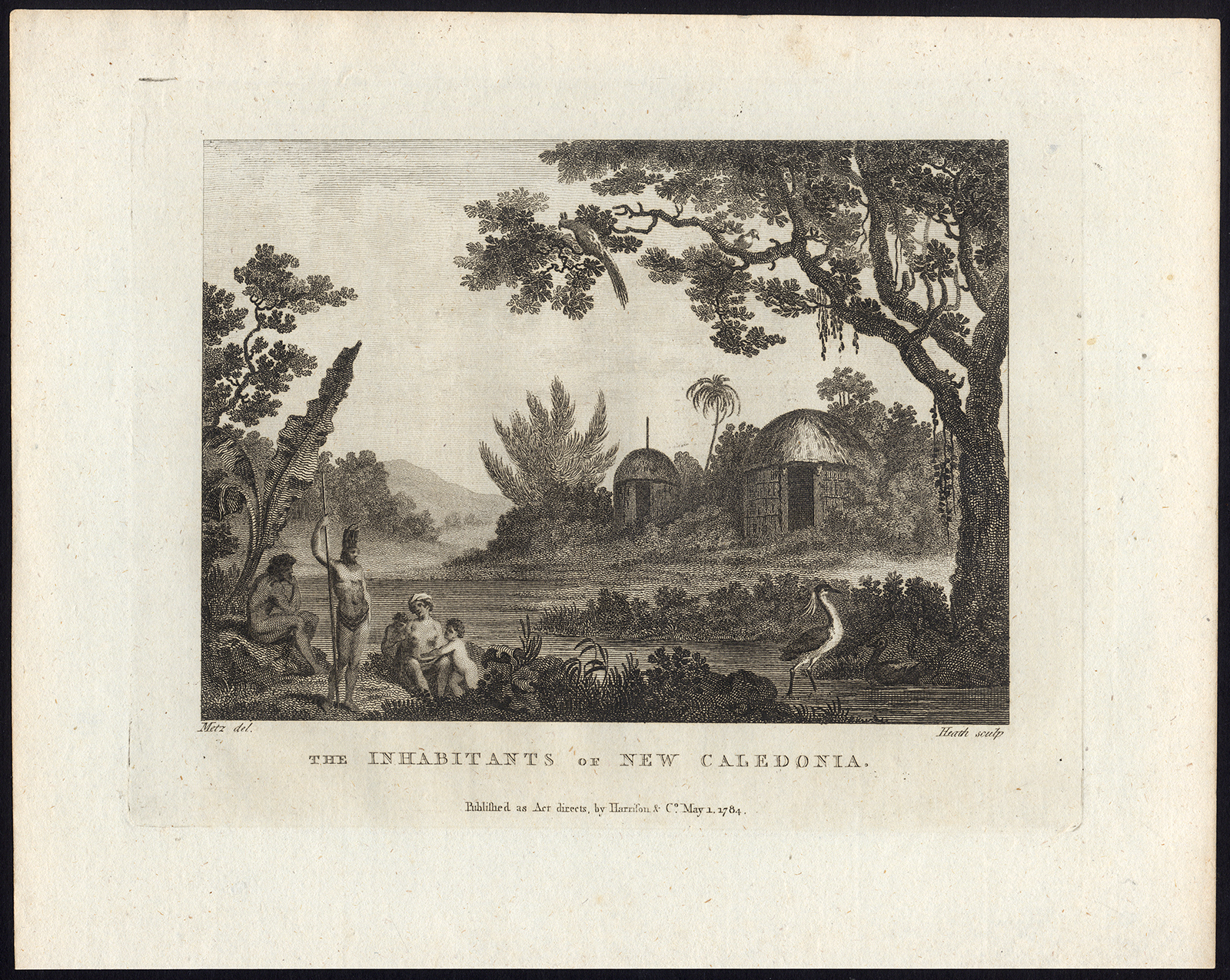 Antieke prent-NIEUW CALEDONIË-NATIVES-VIEW-Heath-Metz-1784