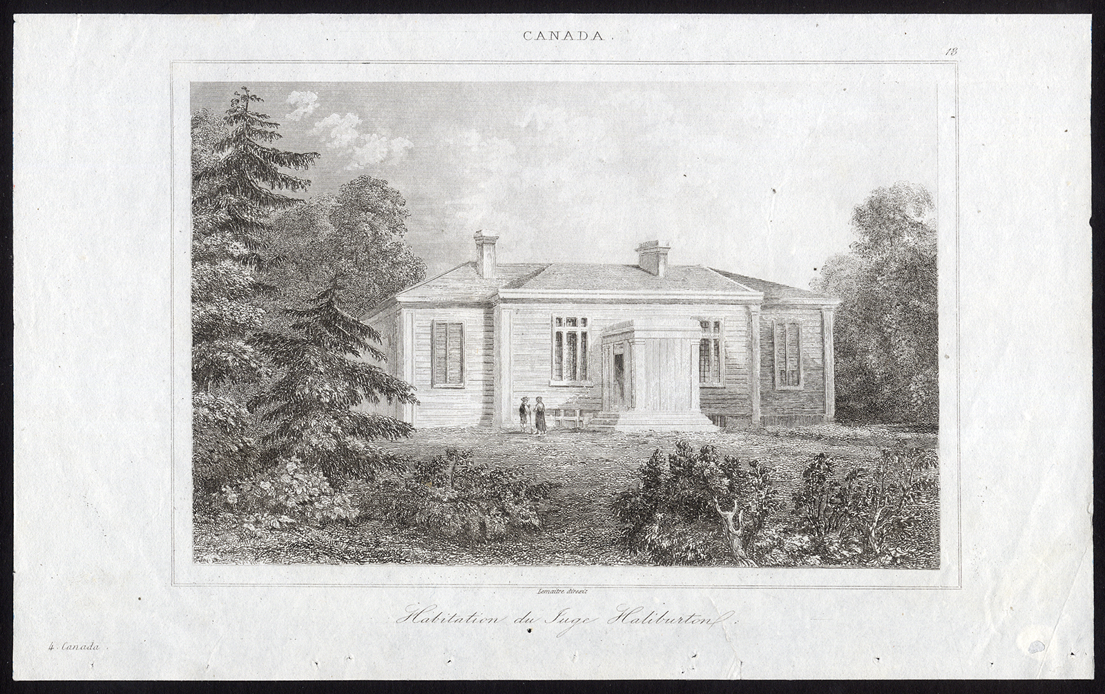 Onderwerp: Plaat: ‘Habitation du Juge Haliburton’. Deze plaat toont het huis van rechter Thomas Chandler Haliburton in Nova Scotia.