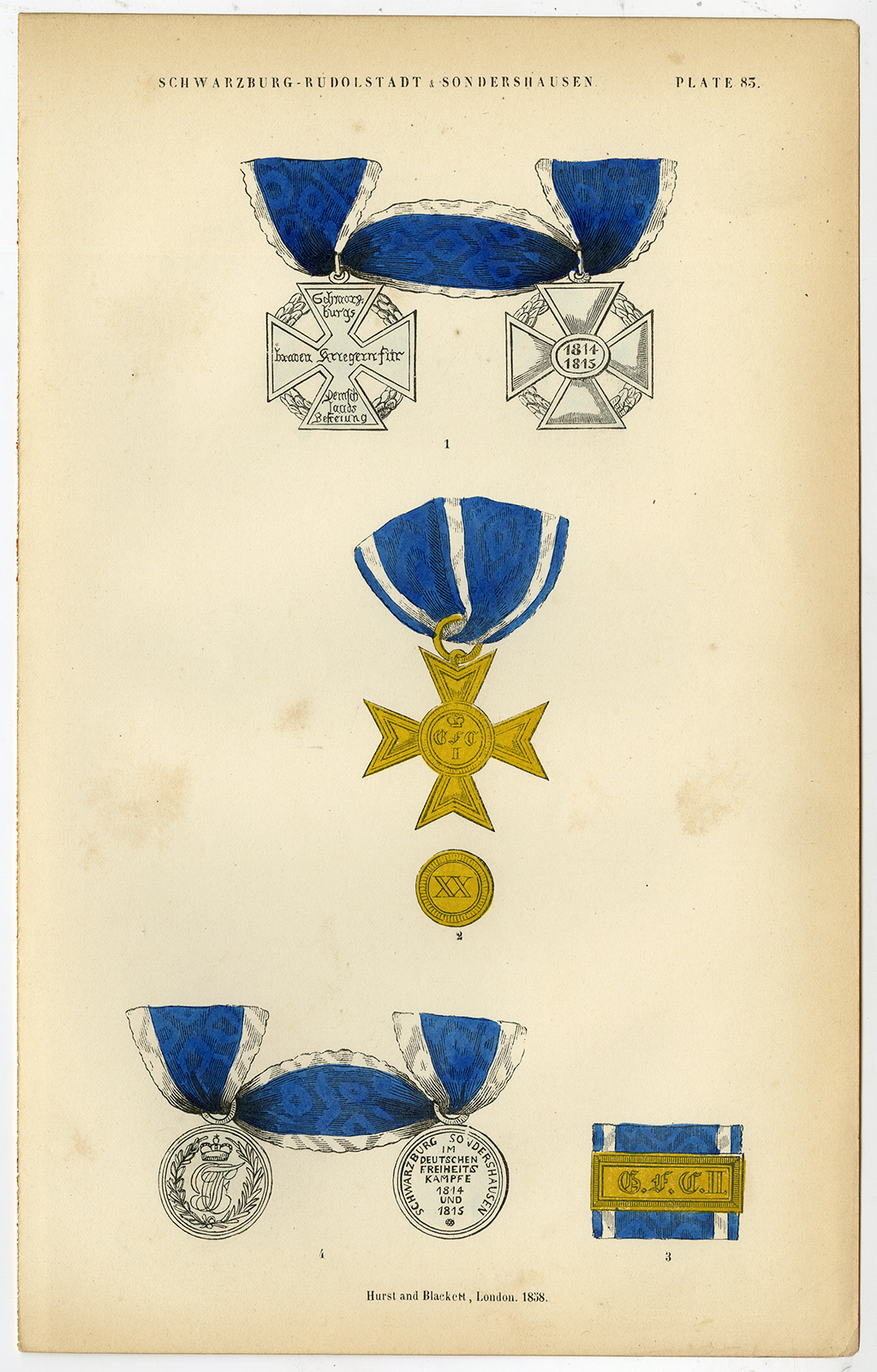 Antieke prent-ORDE-SCHWARZBURG SONDERSHAUSEN-DUITSLAND-MEDAAL-PLAAT 83-Burke-1858