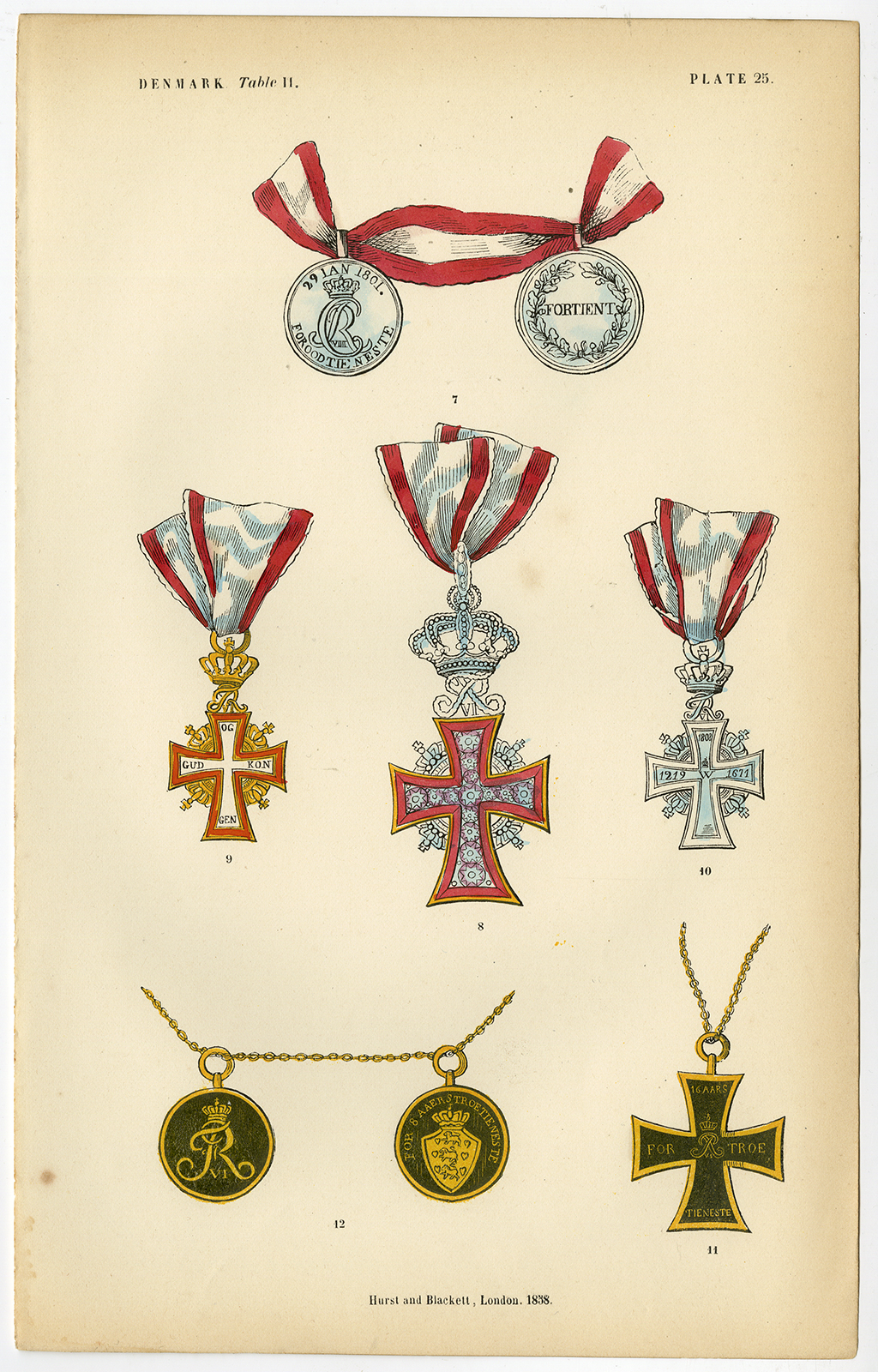 Antieke prent-ORDE VAN DE DANNEBORG-DECORATIE-MEDAAL-DENMARK-PL 25-Burke-1858