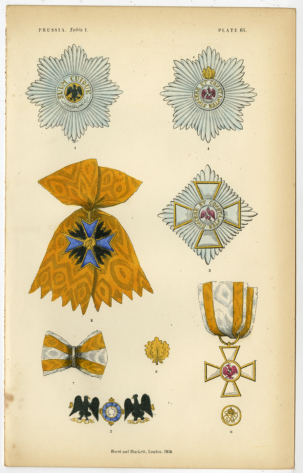 Antieke prent-ORDE VAN DE ZWARTE EAGLE-PRUSLAND-DUITSLAND-PLAAT 65-Burke-1858