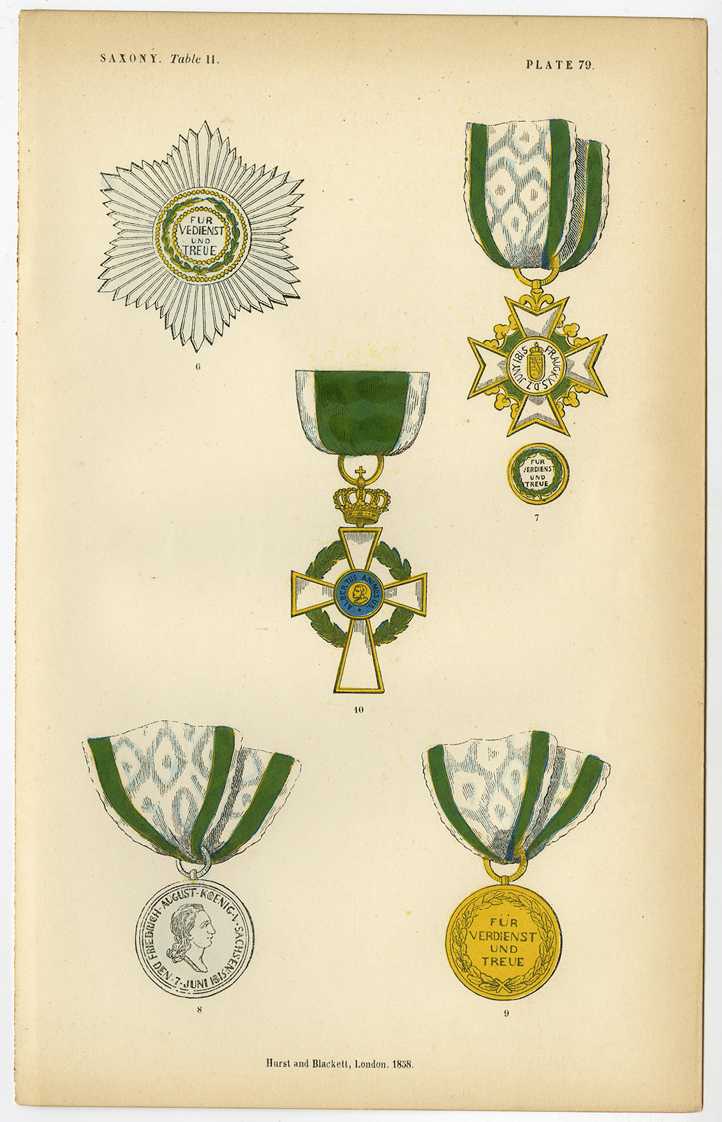 Antieke prent-ORDER OF MERIT-SAKSEN-DUITSLAND-DECORATIE-PLAAT 79-Burke-1858