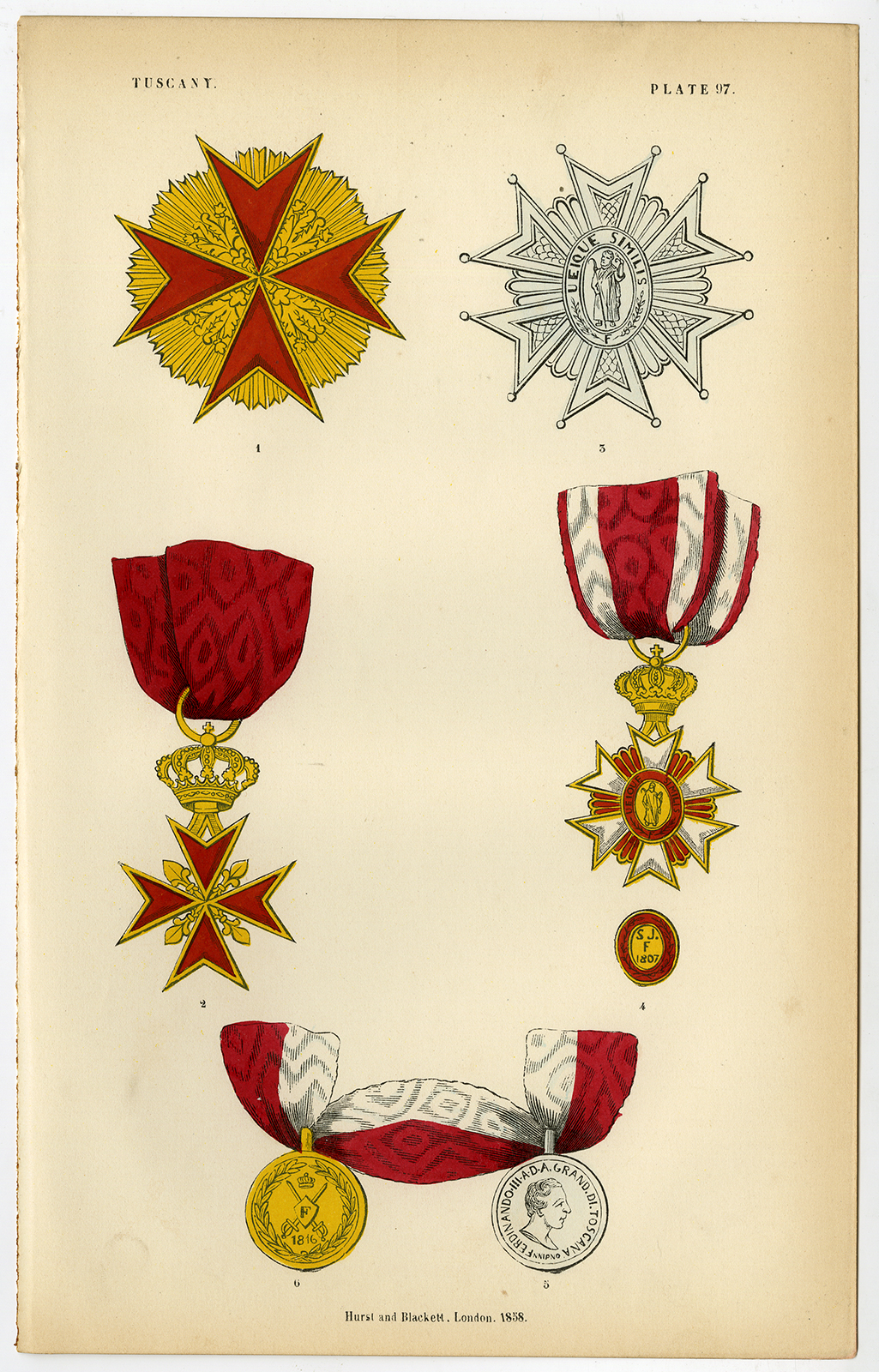 Antieke prent-ORDER VAN ST. STEPHEN-TOSCANIË-DECORATIEPLAAT 97-Burke-1858