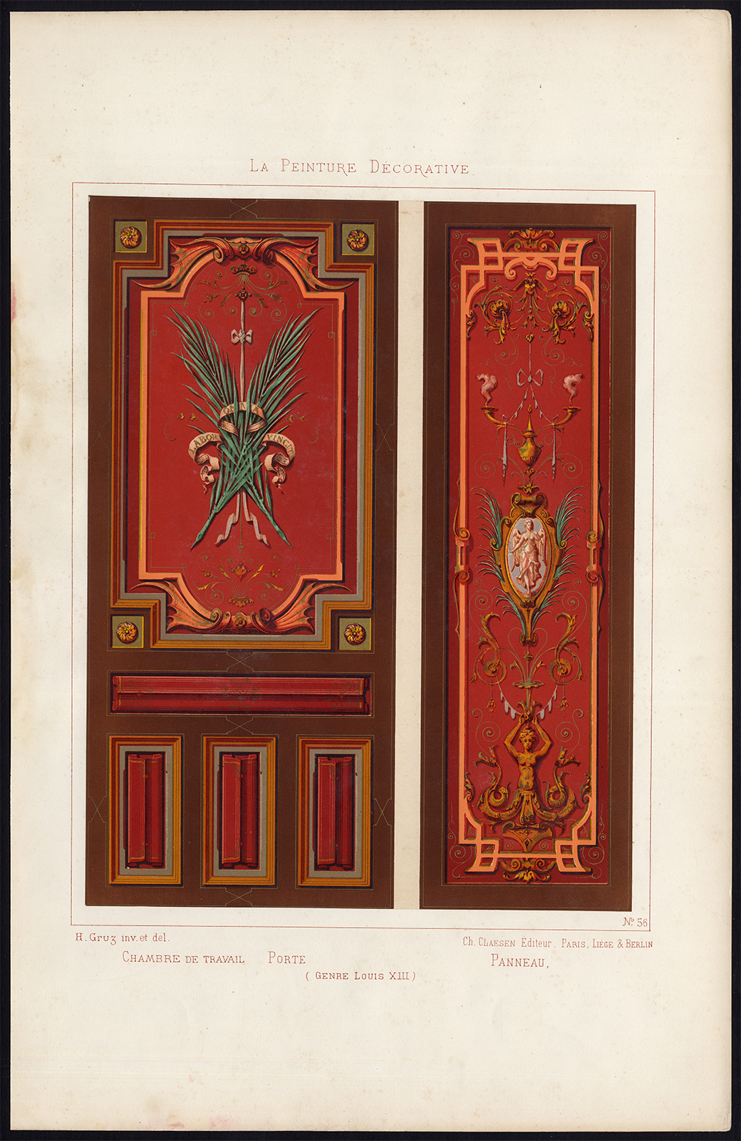 Antieke prent-ORNAMENTEN-DECORATIE-DEUR-PANEEL-LOUIS XIII STIJL-Gruz-1860