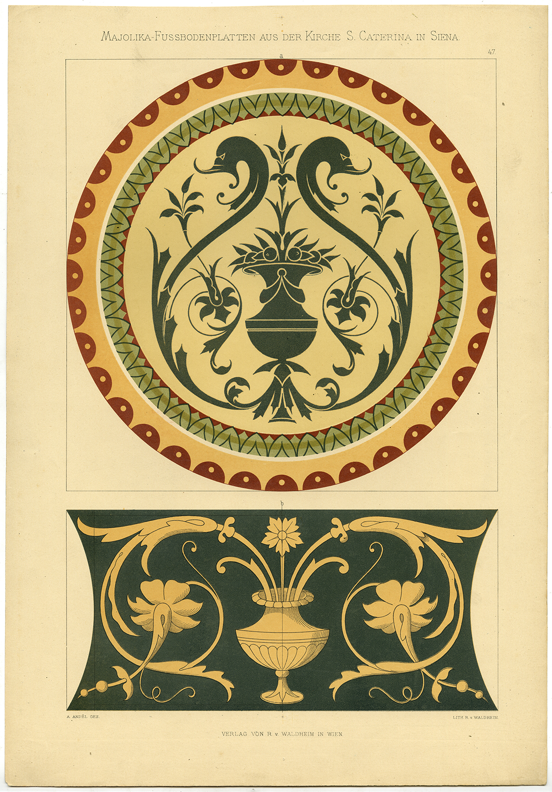 Antieke prent-ORNAMENTEN-SIENA-ST. CATHERINE-KERK-ITALIË-P47-Andel-Waldheim-1878