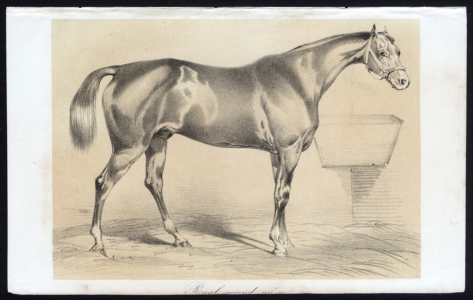 Beschrijving: Deze print is afkomstig uit ‘Journal des Haras, des chasses et descourses de chevaux’, een zeldzaam hippisch tijdschrift uitgegeven in België 1853.