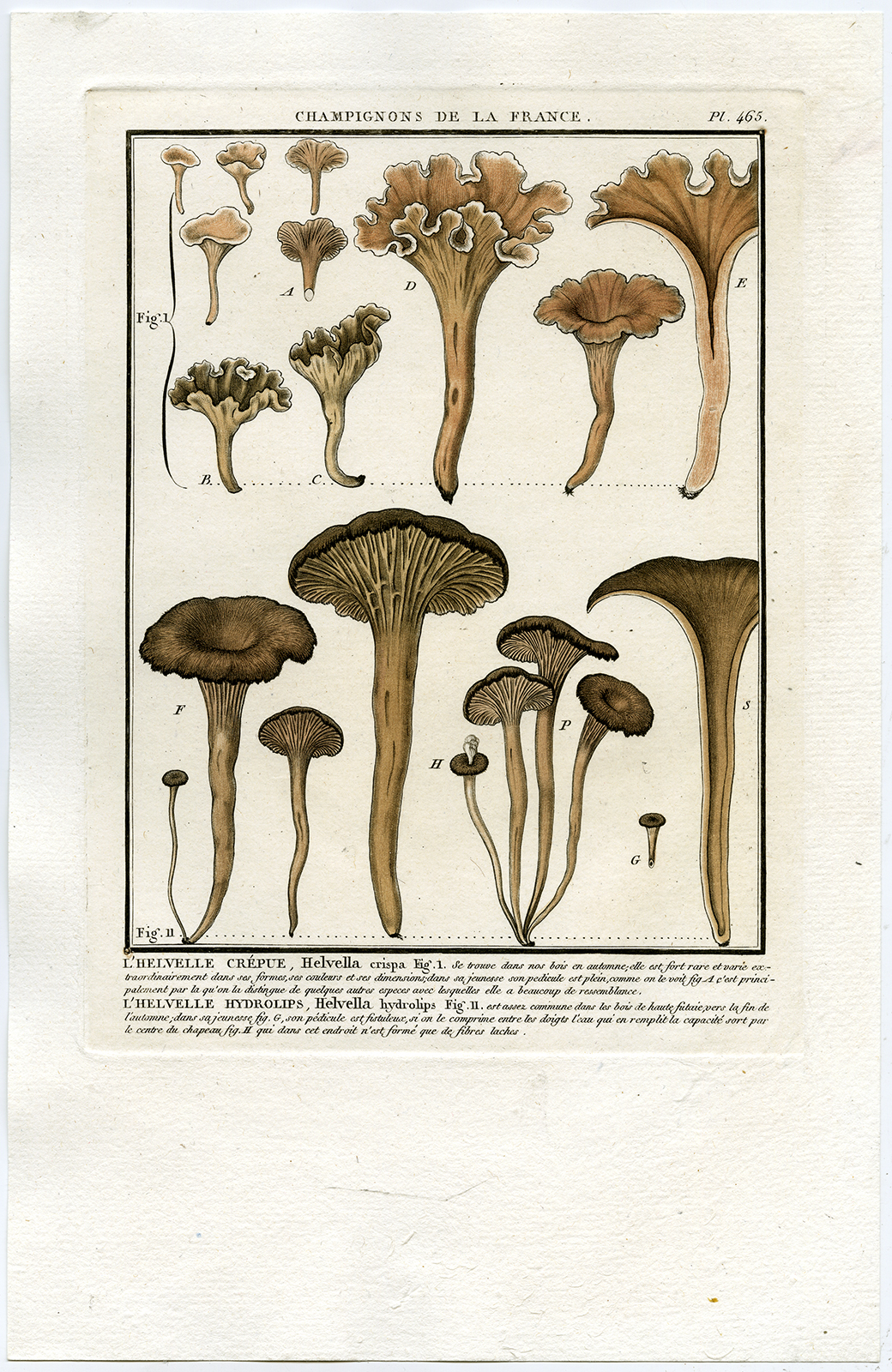 Antieke prent-PADDESTOEL-HELVELLA CRISPA-WIT ZADEL-PL. 465-Bulliard-1791