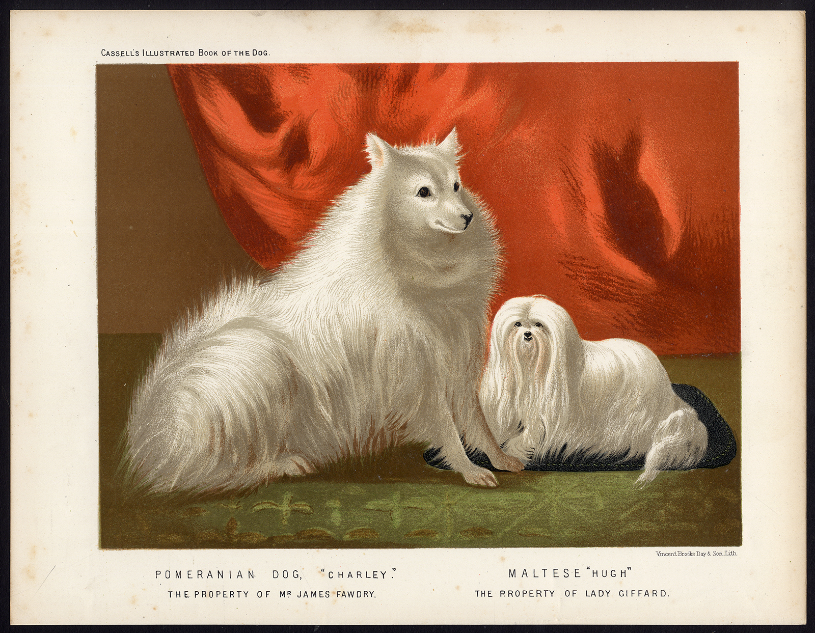 Antieke prent-POMERIANIAN DOG-MALTESE-CHARLEY-HUGH-Cassel-1880