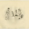 Onderwerp: Antieke druk, zonder titel. Een studie van twee mannenportretten, met in het midden twee kinderen die op een laken op een stoel tekenen.