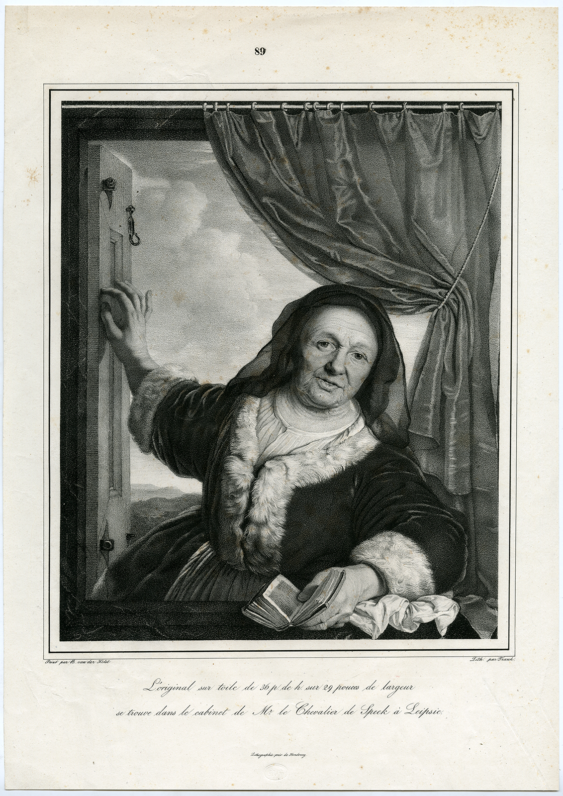 Antieke prent-PORTRET-OUDE DAME-Van der helst-Frank-c. 1840