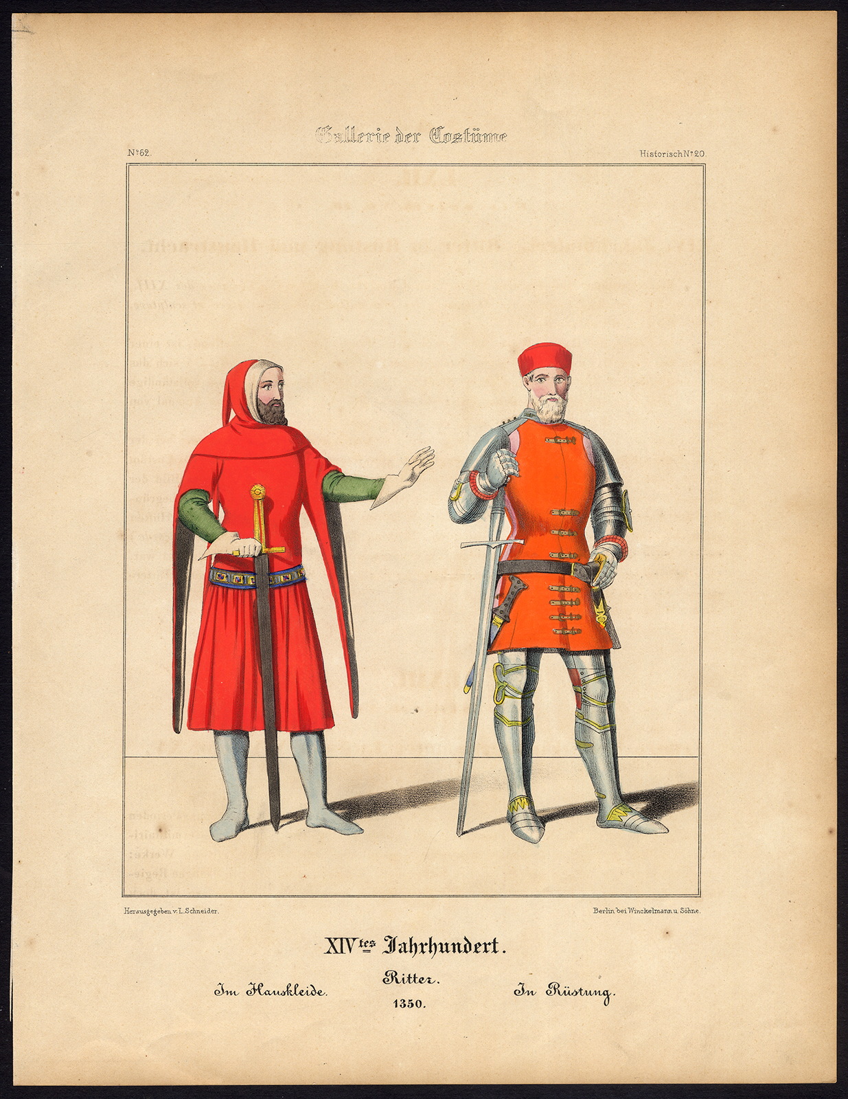 Onderwerp: Plaat: ‘XIVtes Jahrhundert. Ritte im Hauskleide – In Rustung, 1350’. (14e eeuw. Ridder in huiskleding – in harnas, 1350).