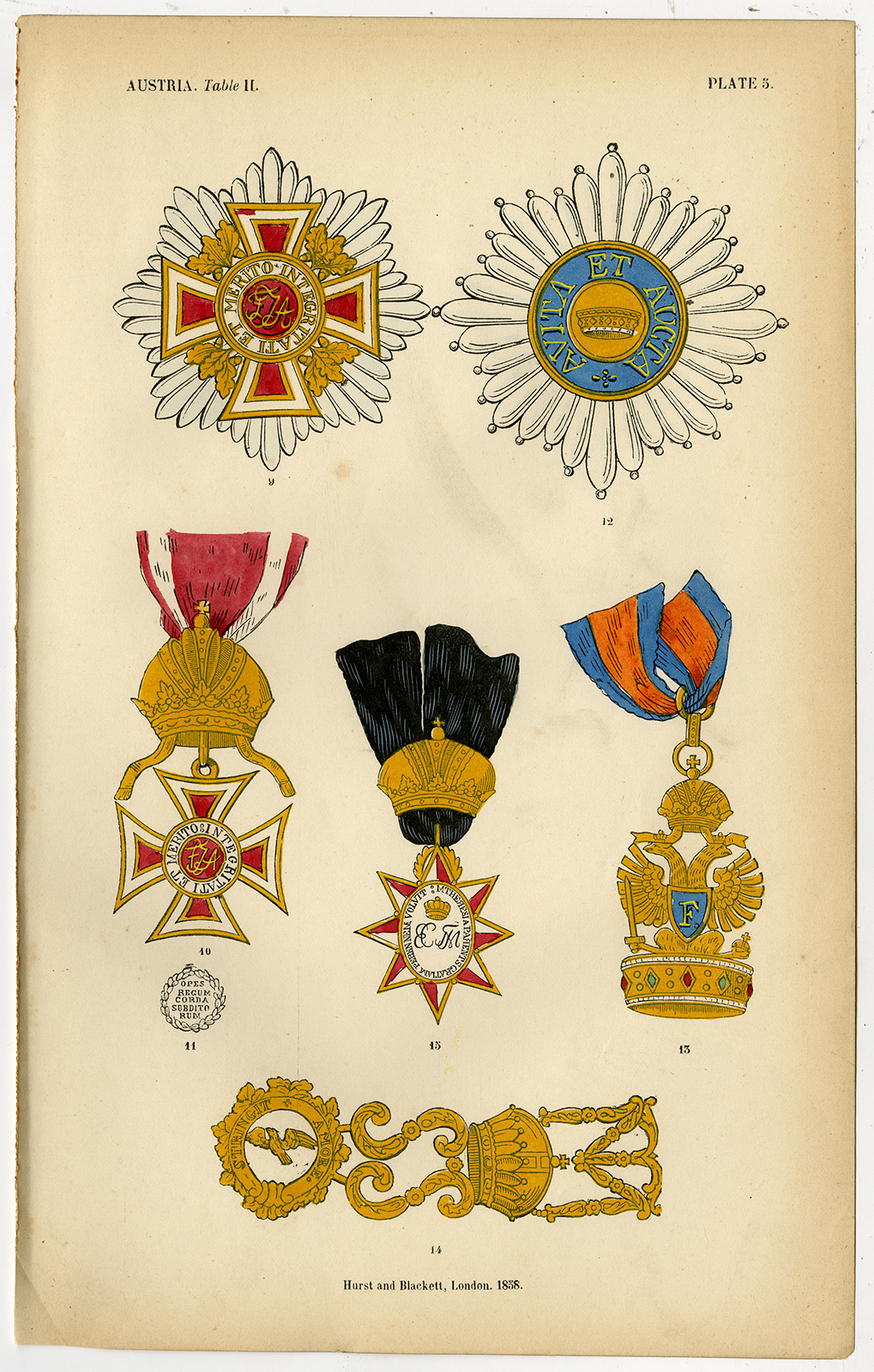 Antieke prent-RIDDERS VAN HET GROTE KRUIS-MEDAAL-OOSTENRIJK-PLAAT 5-Burke 1858