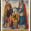 Onderwerp: Plaat 23: ‘Robert de Bethune, 23e Comte.’ Dit bord toont een portret van Robert III van Vlaanderen (1249 – 1322), ook wel Robert van Bethune genoemd en bijgenaamd De Leeuw van Vlaanderen, hij was graaf van Nevers 1273 – 1322 en graaf van Vlaanderen 1305´?¢1322. Met wapenschild. Tekst in het Frans op de achterzijde.