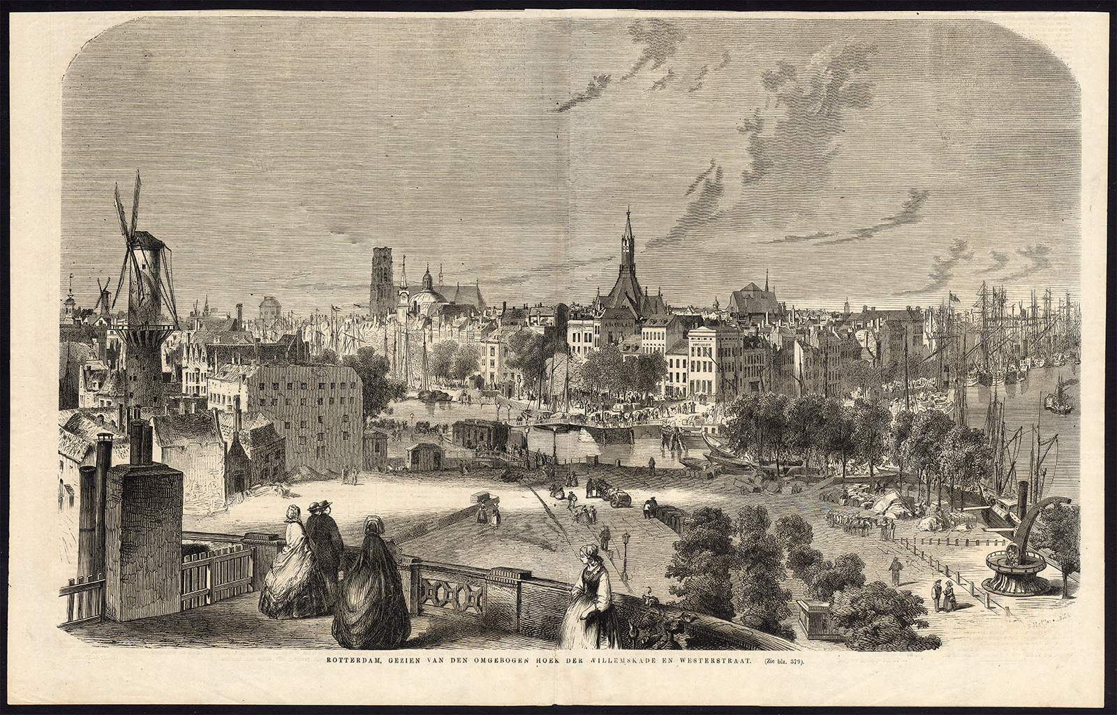 Antieke Prent-ROTTERDAM-NEDERLAND-ZICHT-WILLEMSKADE-WESTERSTRAAT-1885