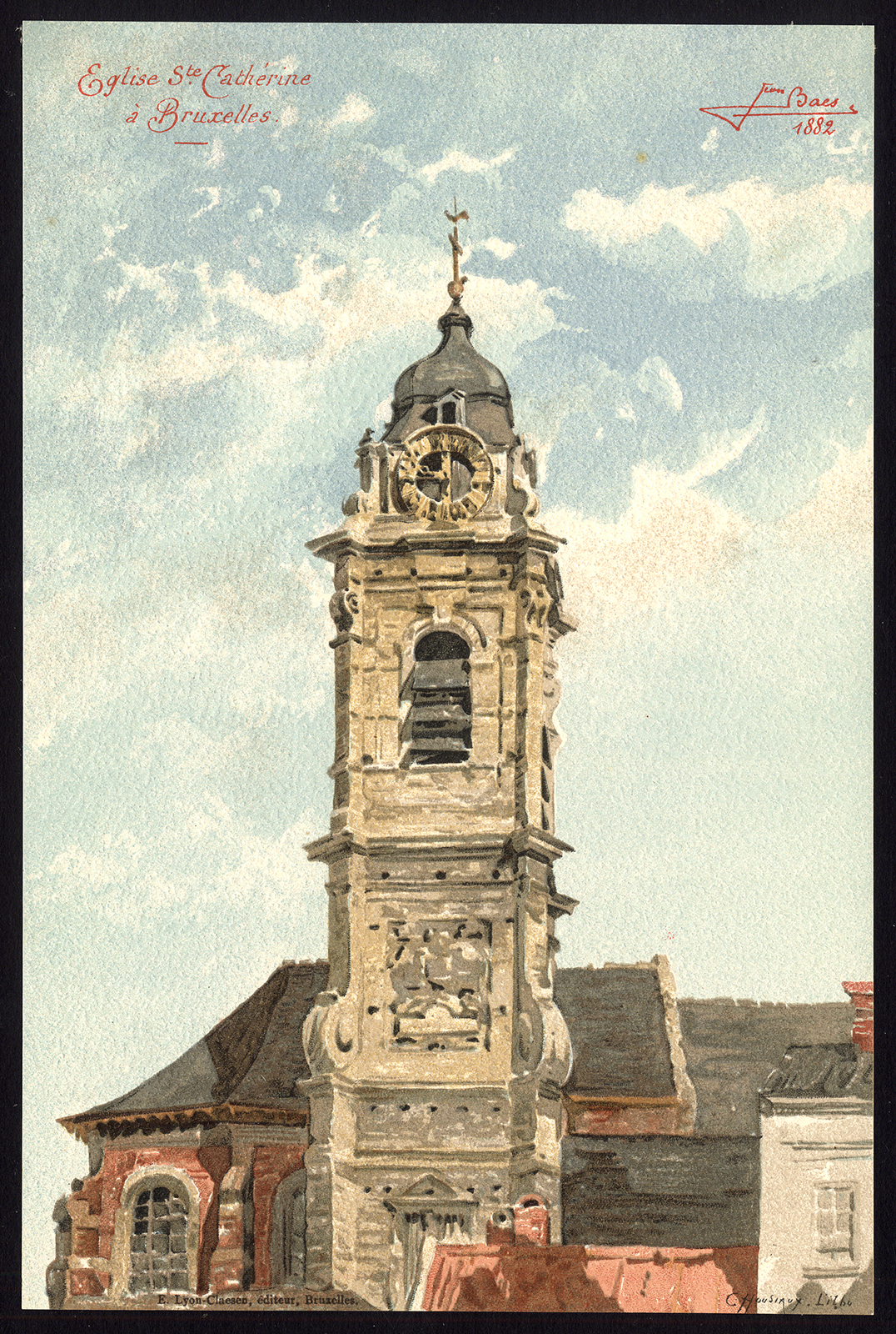 Antieke prent-SAINTE CATHERINE-KERK-BRUSSEL-BRUXELLES-BELGIË-Baes-1890