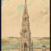 Onderwerp: Plaat: ‘Eglise Ste. Catherine a Brussel.’ Dit bord toont de kerk van Sint-Katelijne in Brussel / Bruxelles, België.