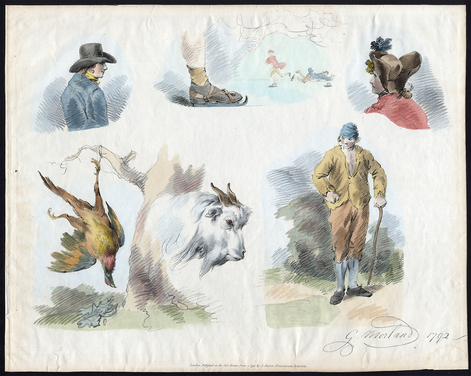 Antieke prent-SCHETSEN-GEIT-FAZANT-IJSSCHAAT-BOER-George Morland-1793