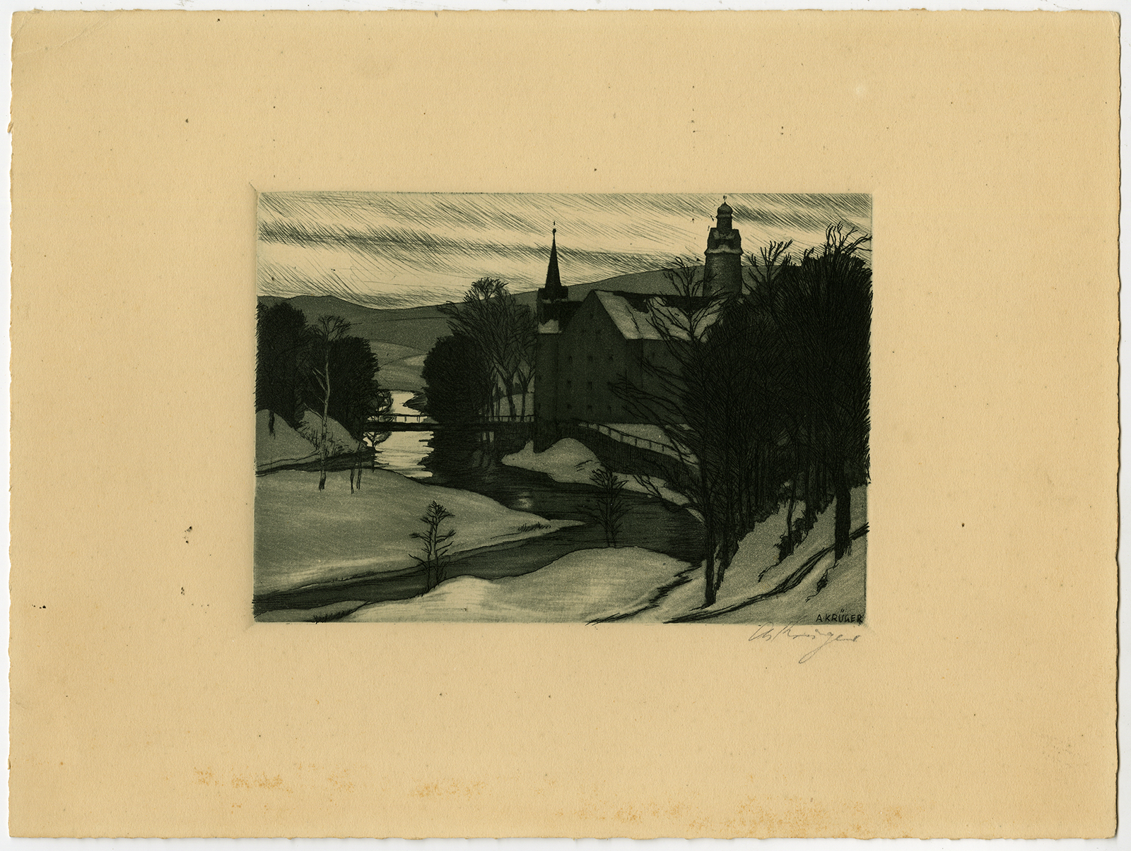 Kunstenaars en graveurs: Gemaakt door ‘Alfred Kruger’ naar een anonieme kunstenaar. Alfred Kruger (geb. 1876), Duitse kunstenaar en graveur.