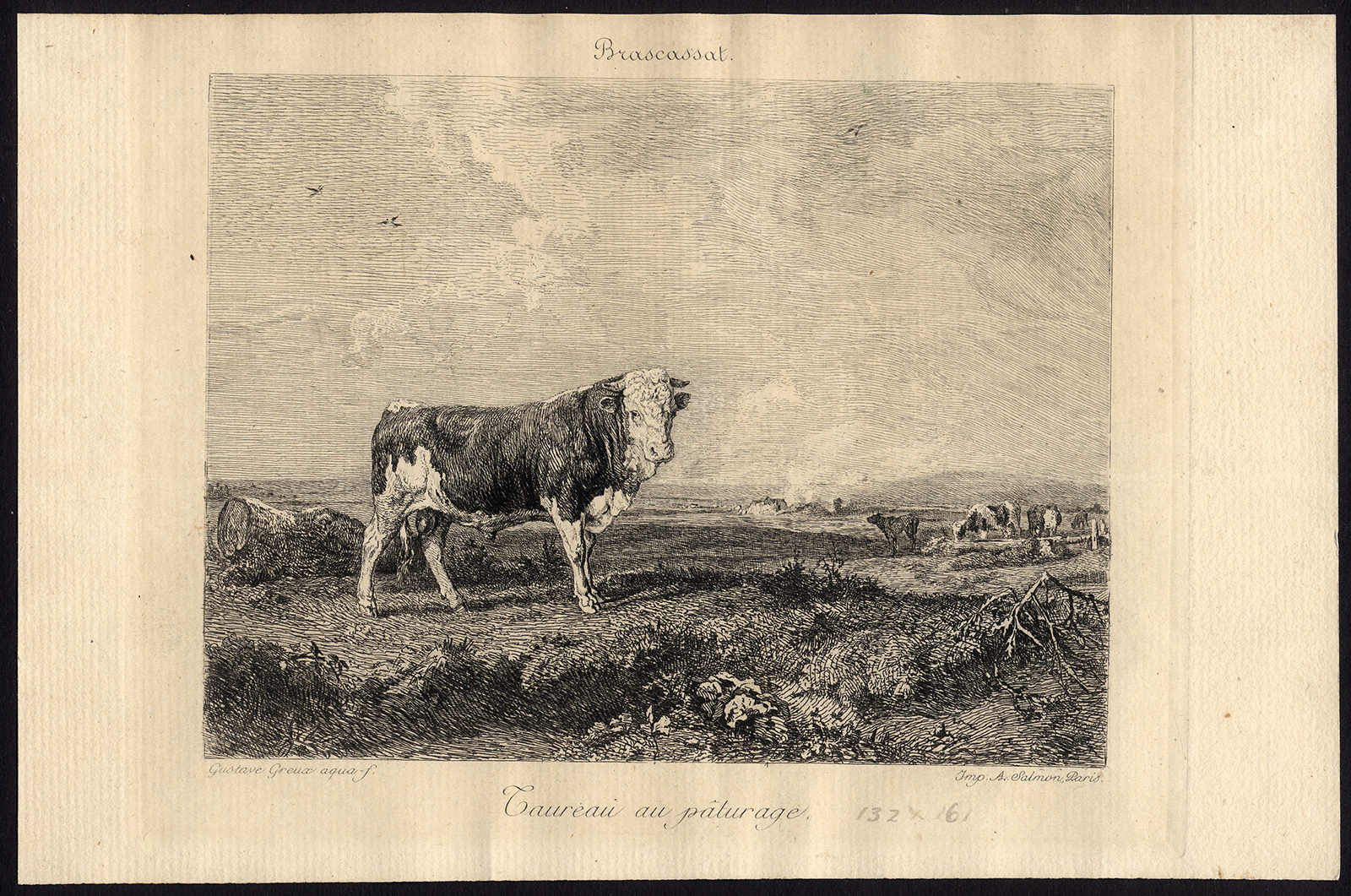 Kunstenaars en graveurs: Deze plaat geëtst door Gustave Greux naar Jacques Raymond Brascassat.