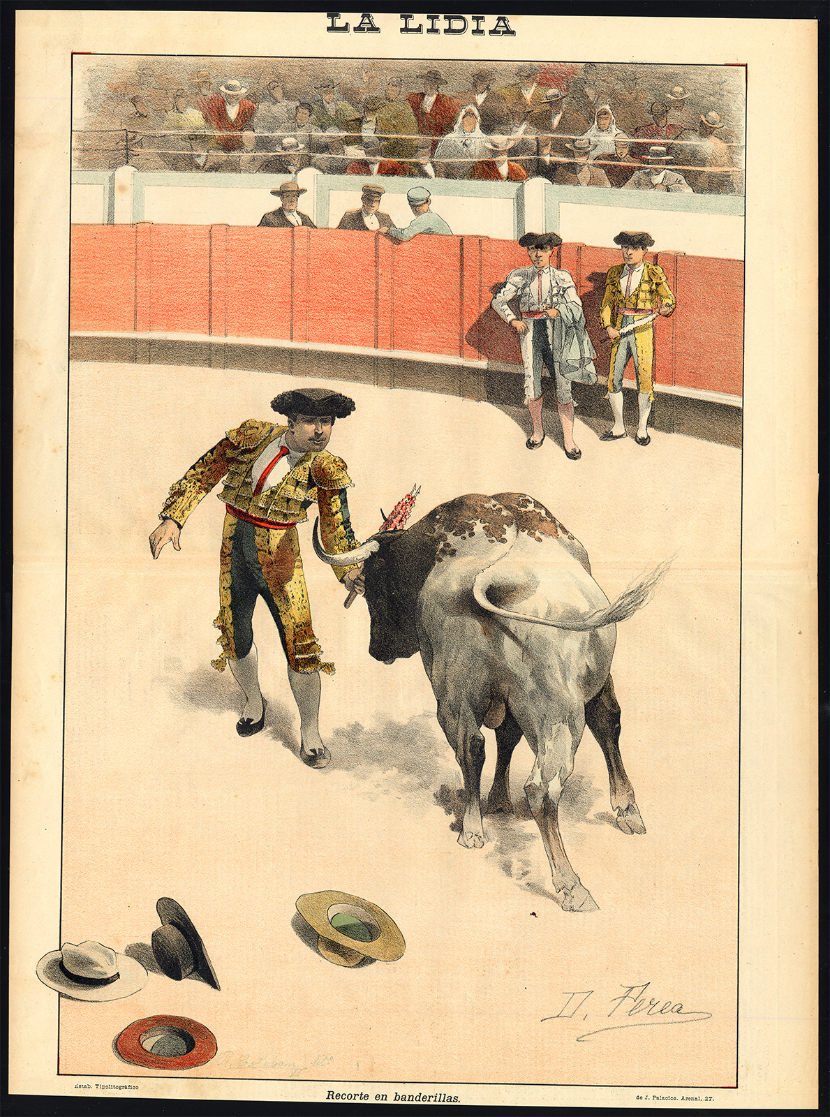 Beschrijving: Deze aantrekkelijke originele oude antieke prent/plaat is afkomstig van: ‘La Lidia’, een Spaans stierenvechtmagazine dat eind 19e eeuw in Madrid werd uitgegeven