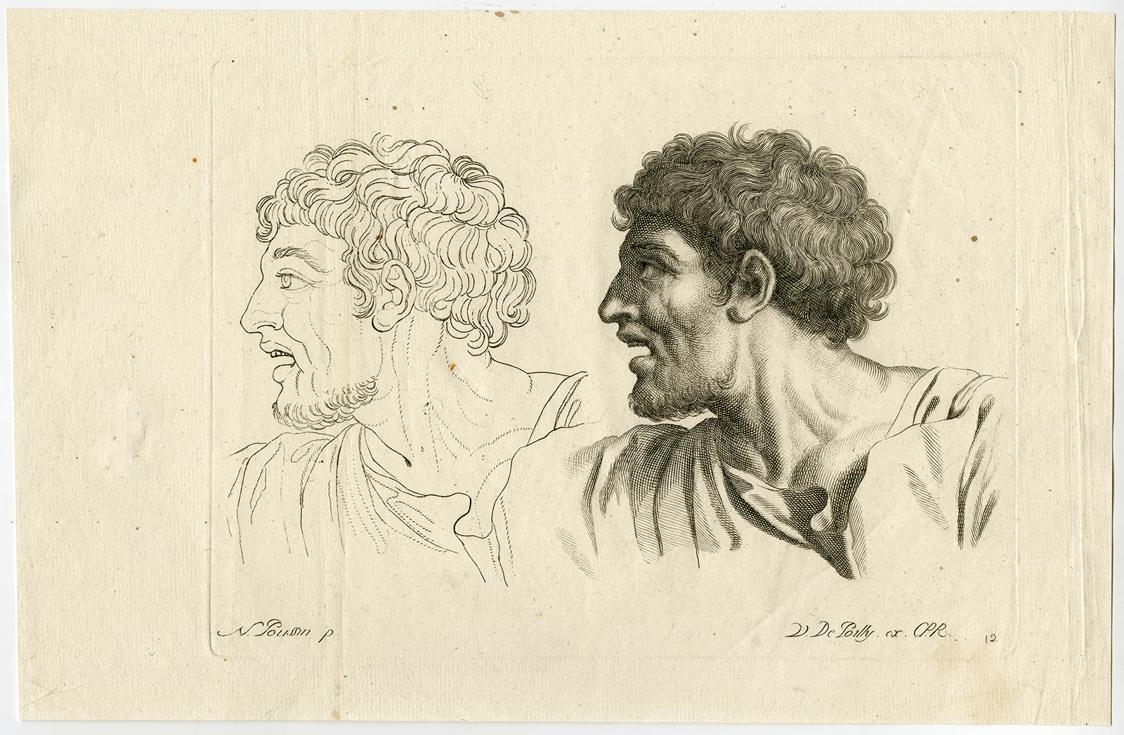 Antieke prent-STUDIE-PORTRET-GEZICHT-MAN-PLAAT 12-Poussin-De Poilly-c. 1728