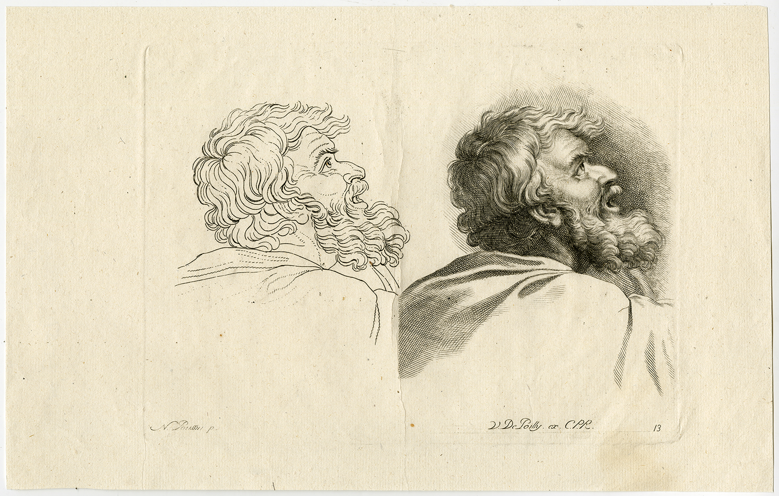 Antieke prent-STUDIE-PORTRET-GEZICHT-MAN-PLAAT 13-Poussin-De Poilly-c. 1728