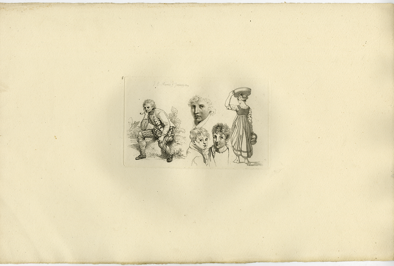Kunstenaars en graveurs : Gemaakt door ‘JE Marcus’ naar eigen ontwerp. Jacob Ernst Marcus (1774 – 1826) begon in 1807 met zijn serie van 105 geëtste landschappen, studies en portretten die maandelijks verschenen. In 1834 werden de platen herdrukt op dikker papier (deze uitgave).