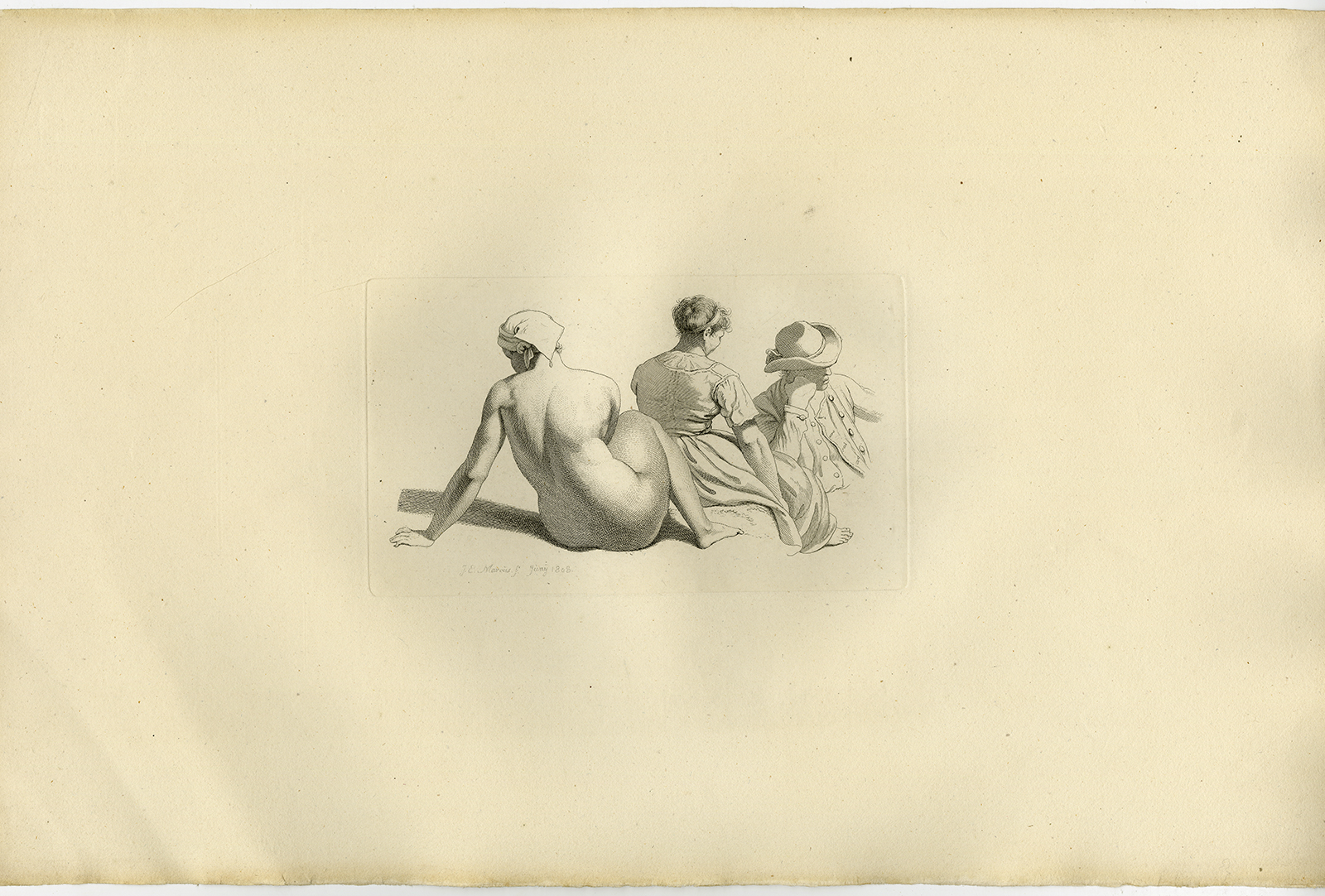 Antieke prent-STUDIES-NAAKTE VROUW-ZITTEND-1808-Marcus-1834