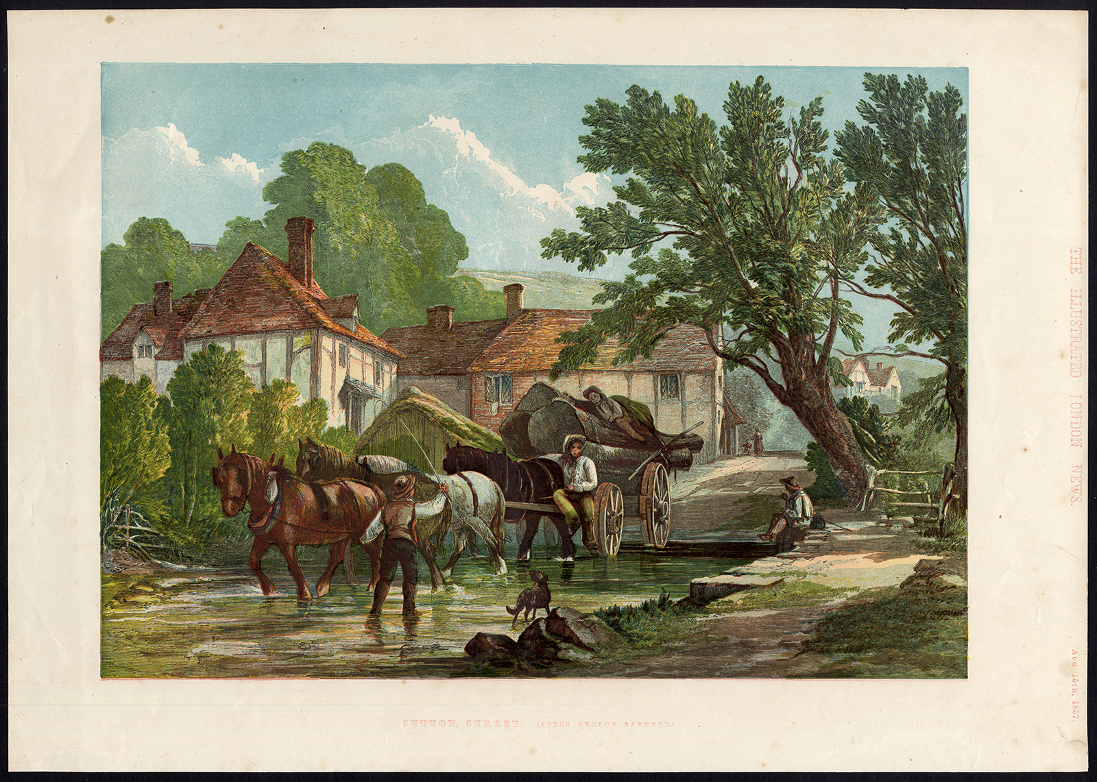 Antieke prent-SUTTON-SURREY-ENGLAND-HORSE-VIEW-Barnard-1860